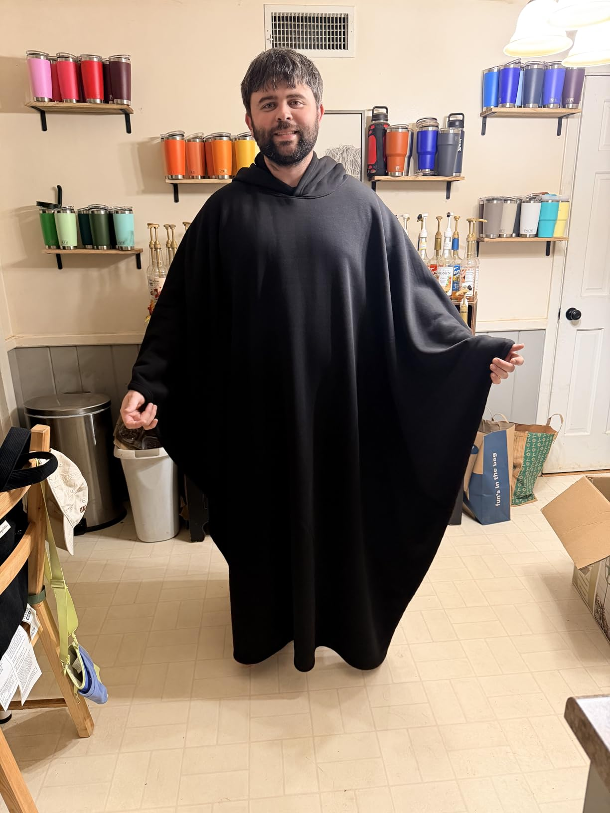• J'avais peur que ça fasse 'sac à patates'... Mais en fait non ! C'est pile comme je voulais : enveloppant sans être encombrant. Mon chat a même essayé de me le voler. Best achat ever !