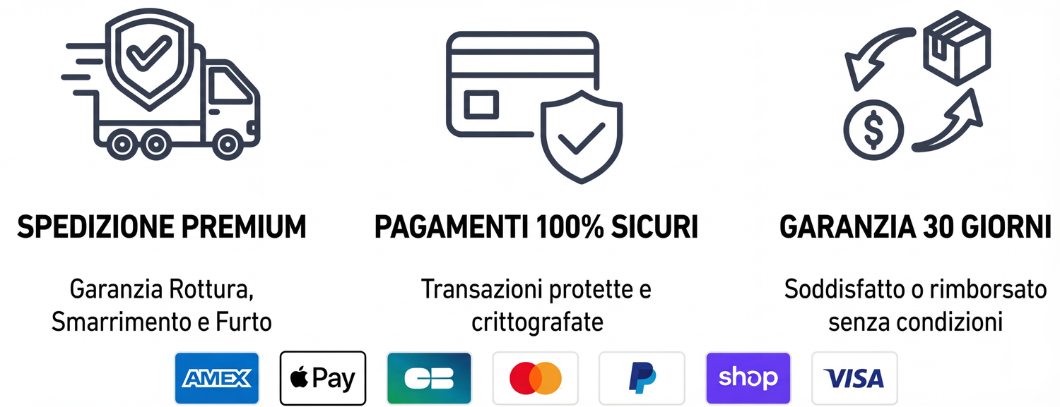 Offriamo una garanzia soddisfatti o rimborsati di 30 giorni. Se per qualsiasi motivo non sei completamente soddisfatto del tuo acquisto, puoi restituirlo per un rimborso completo. La tua soddisfazione è la nostra priorità!