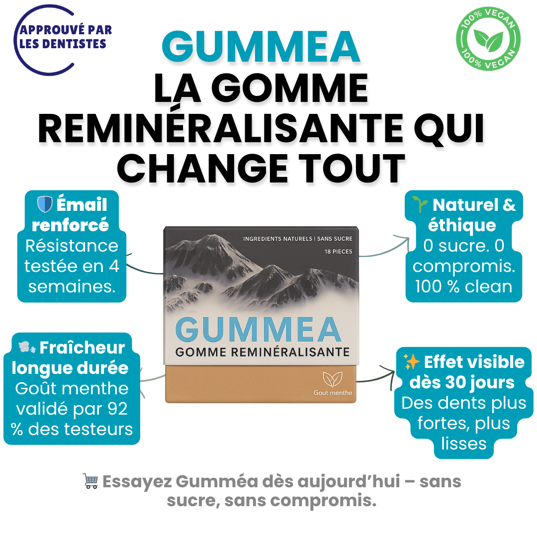 Mâcher Gumméa ne remplace pas le brossage, mais c’est un complément scientifiquement prouvé. Il reminéralise l’émail, réduit la plaque et équilibre le pH buccal, là où la brosse ne va pas toujours. Un vrai allié au quotidien.