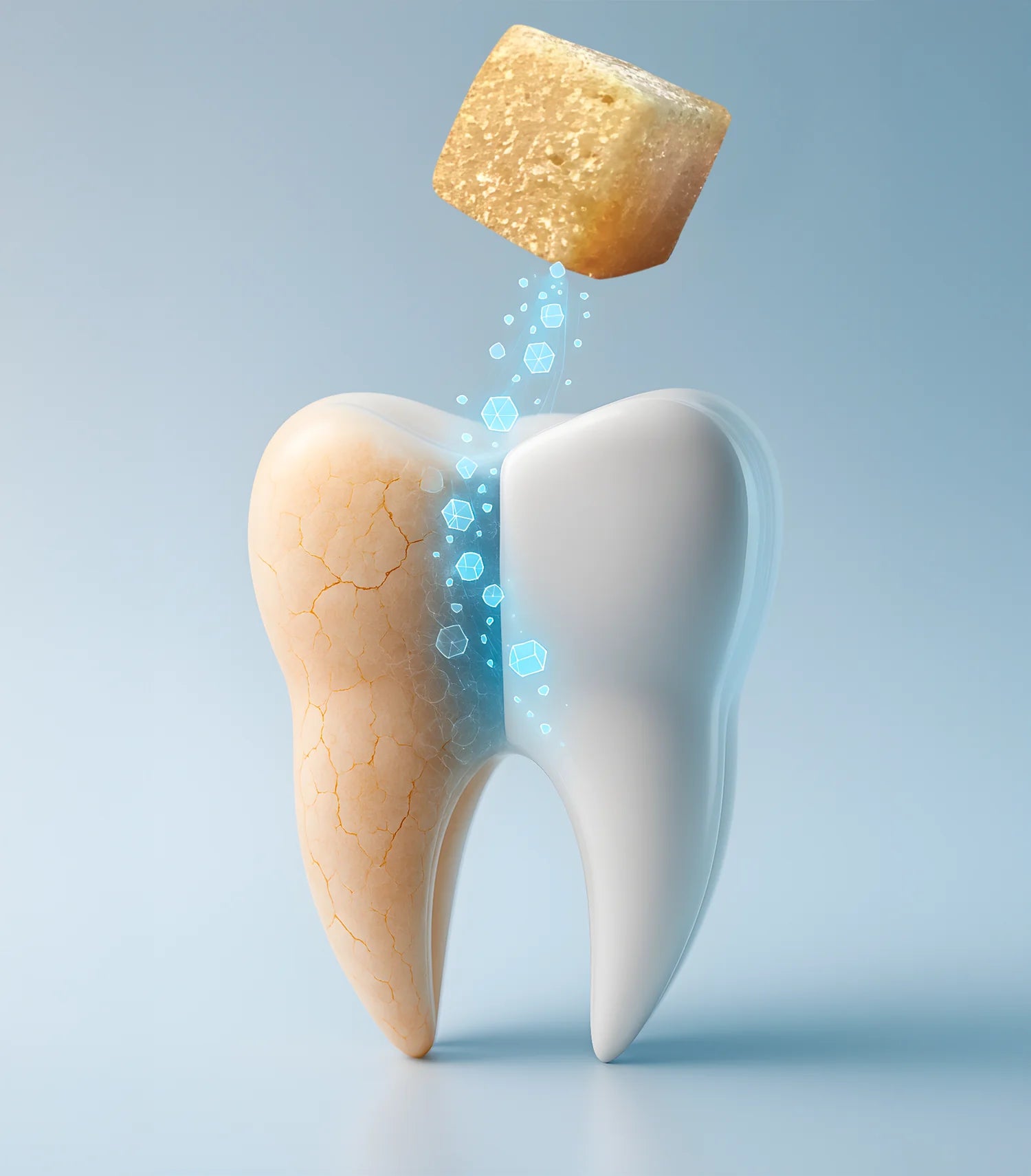 L’hydroxyapatite comble les micro-fissures pour des dents plus fortes.